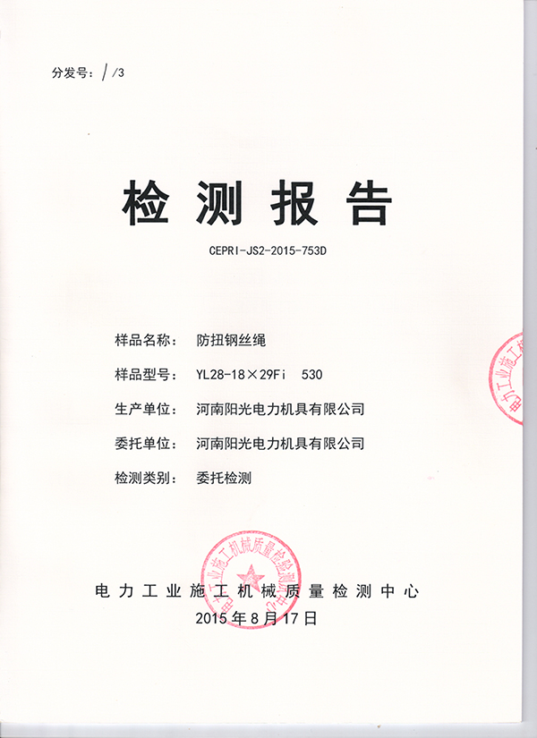恭祝我公司YL28-18×29Fi 530通過電力工業(yè)施工機(jī)械質(zhì)量檢測中心認(rèn)證